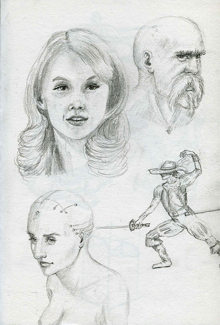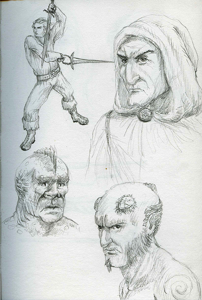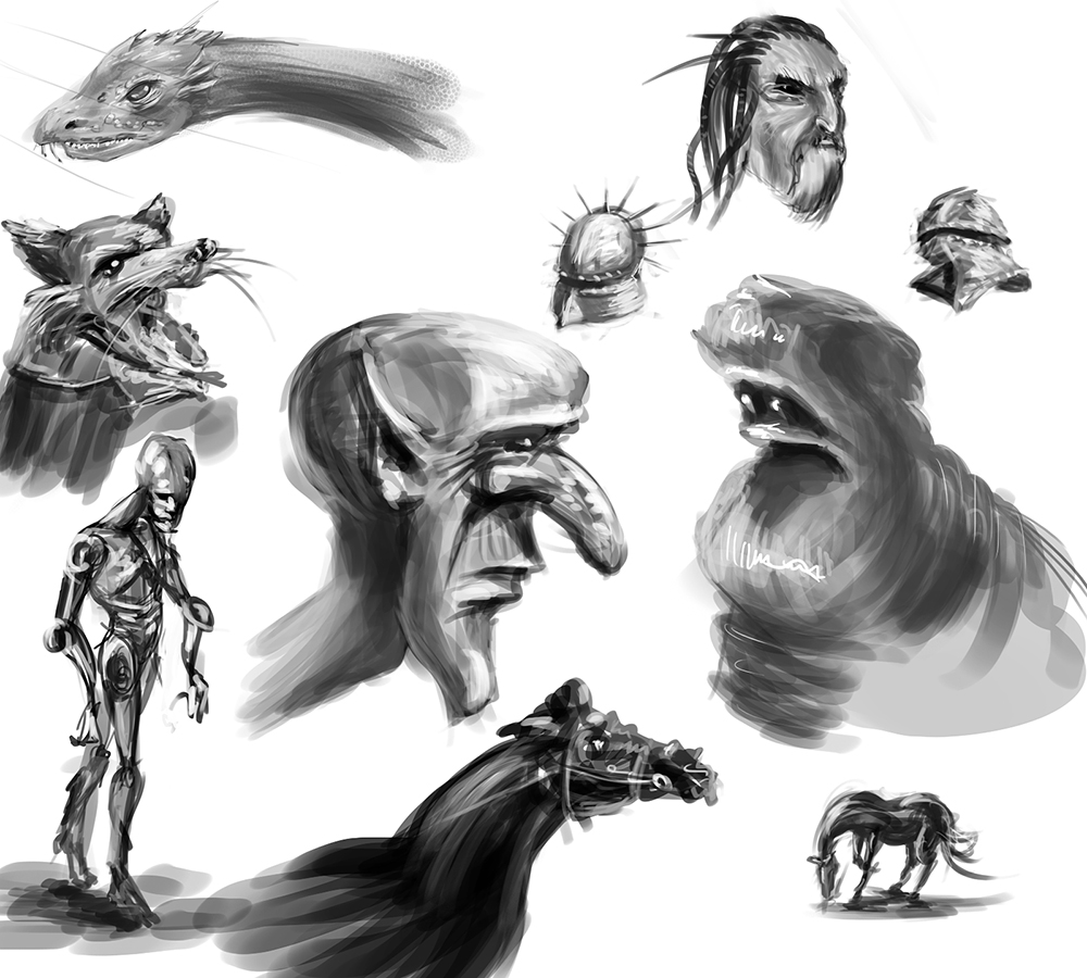 Your sketches of faces look pretty nice, as well as the monochromatic monster heads. I would like to see some fo your figure sketches though if that's ok.