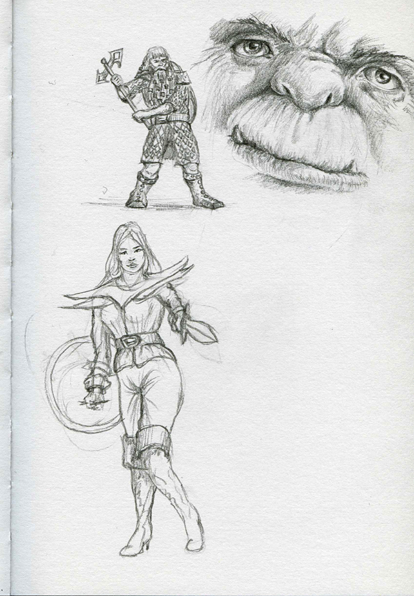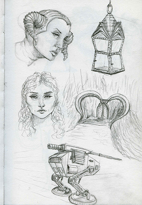 Strong start to your sketchbook here. You have a nice sense of light and dark, I see some Anthony jones influences in your work. Keep up the good work. :)