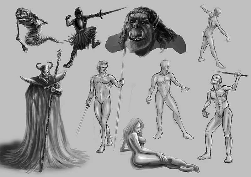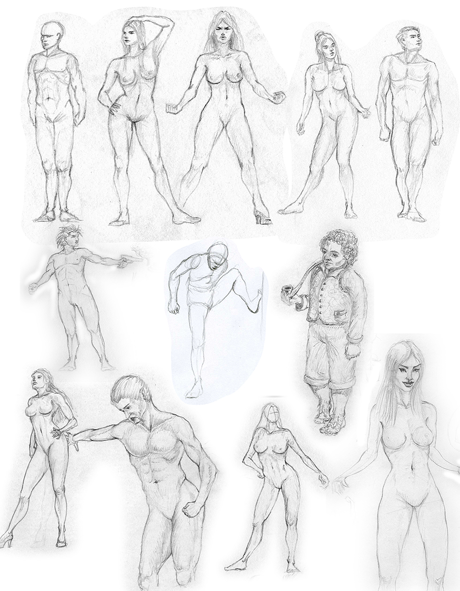 Here are some figure sketches from imagination in pencil. Not really great though. I still need to work lots on my anatomy and foremost more dynamic, fluid and natural poses. And don´t talk about my hand and feet drawing....seriously....don´t