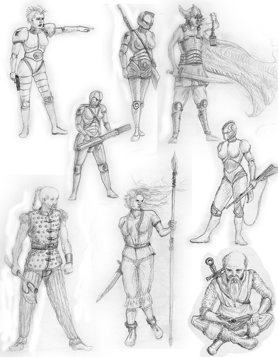 Some doodles and figure sketches from mind (except for the woman, that is a very quick study with reference)