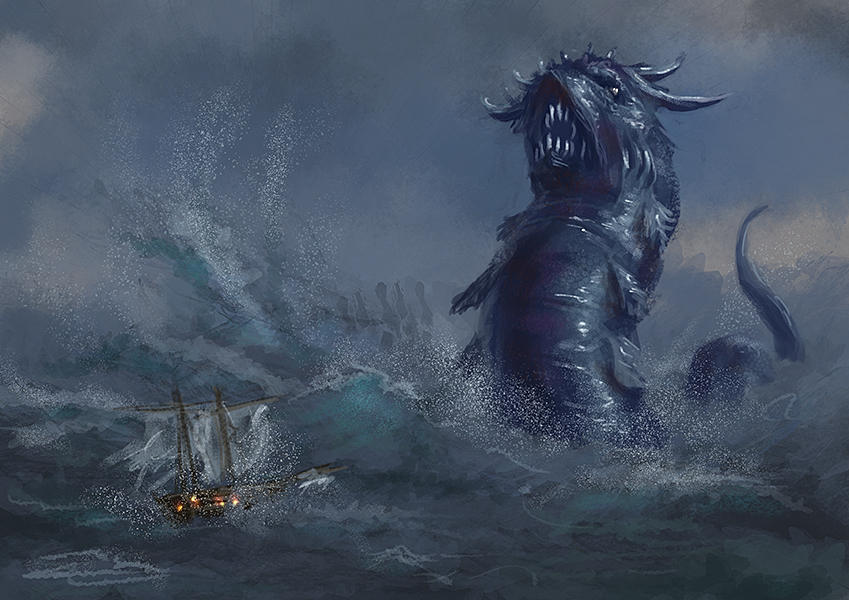 Wow, I gotta say I'm loving the colors in your paintings, especially those first few blue and orange ones. You're lines could use more confident strokes, and paintings would like twice as good with a bit more polish than you're already giving them. This last one with the serpent is nice, the creature itself is rendered pretty well, nice strokes and etc. The water and ship look as if they could've gotten a bit more attention, though. Again, really loving your colors. :]