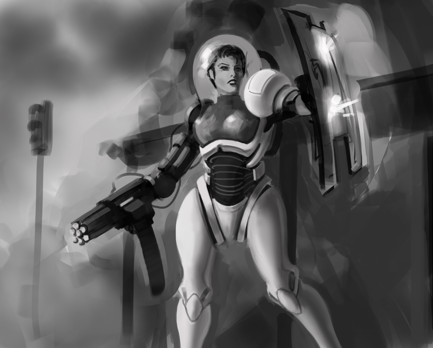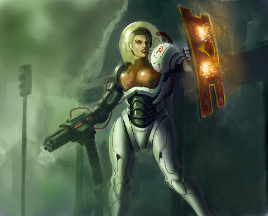Here's the finished version of the space soviet.. Well I'm not happy at all with her, the composition is terrible, I definitely need to work on it (studiiies !), and the rendering is bad :( In the end it is simple : I need to work harder on the next piece è_é !
