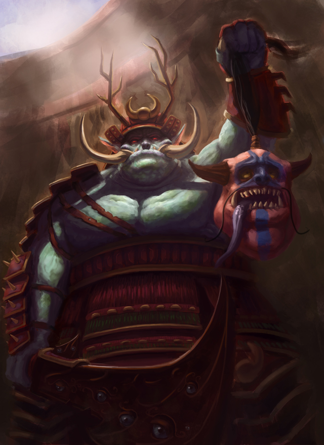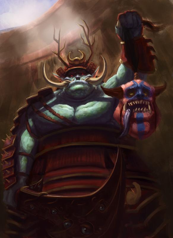 Awesome oriental ogre, man! I agree with MrFrenik. I don't believe that it's crap. There's a lot of stuff touching the edges though, you should give him some more space to breathe! Might even want to get rid of the background or tone it down. Any direction you want.