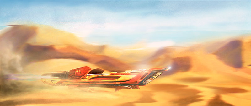 It would be interesting to add contrast between the background and the subject .A color thumnail for the vehicle could have save you some time if you didnt do it.The perspective make the vehicle read flat.