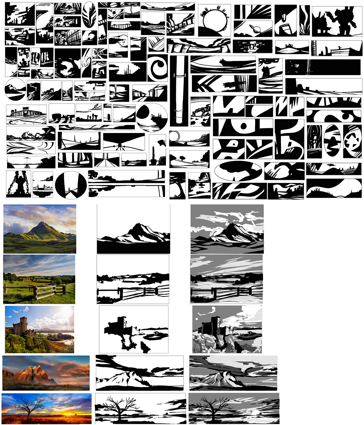 Hey Folks! I am loving everyone's work so far! Great job! Here is my submission. I rushed to finish it! I did everything except one 4 value study. Ran out of time :/ Luckily I submitted my work 2 mins before deadline. XD This exercise was definitely challenging! I spent too much time on my notan sketches. Esp up to 60/100. After that I decided to go more abstract and focus in on just design. The last 40 were done a lot quicker. Anyhow, I really enjoyed this exercise and found it to be extremely helpful! From now on I will use the notan exercise as my go-to for warming up. By the way, Amit, I love the new website for the class. And your recorded crits have been really helpful! Thanks a million! :-)