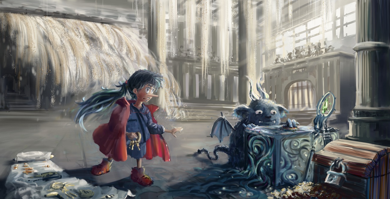 Well, this is easily the longest time I have ever spent on a single painting. It's been fun, but at this point I can't tell if it makes sense anymore. I ended up flipping the final because I'd been working on it mirrored half the time, and I felt like it worked better this way, but that might just be a delusion from staring at it too long.
