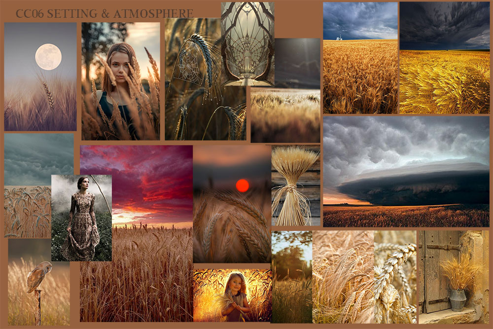 Damn, I don't care that much about mood boards, but the ones you've posted have some pretty amazing synergy, and making that creature out of crops works amazingly well in terms of creating mood... feels like a nature spirit or something. It still seems a little simple at this stage, but it has the potential to mesh together amazingly well if you treat some the bundles of crops like muscles, znd use them to describe the forms of your creature.