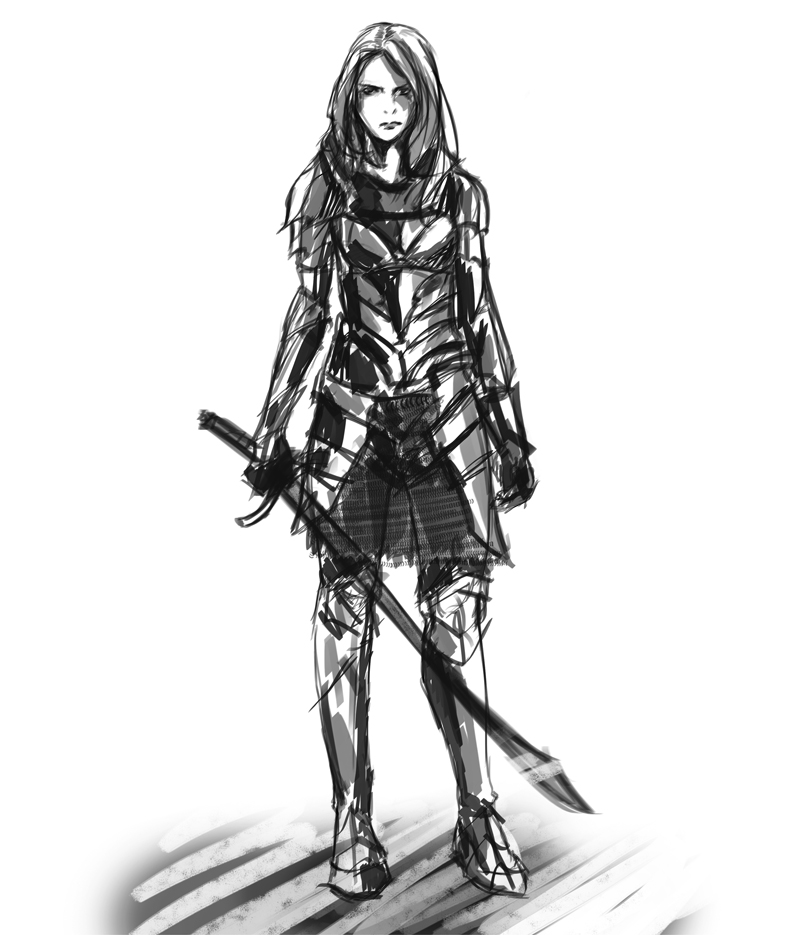 Today i felt a bit guilty so i returned to work inmediatly, but first, i did this sketch as a warm up. (And fun with fancy brushes!)