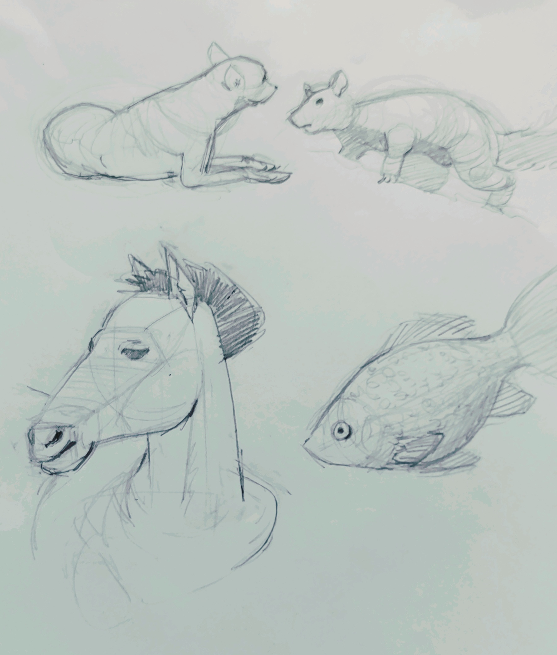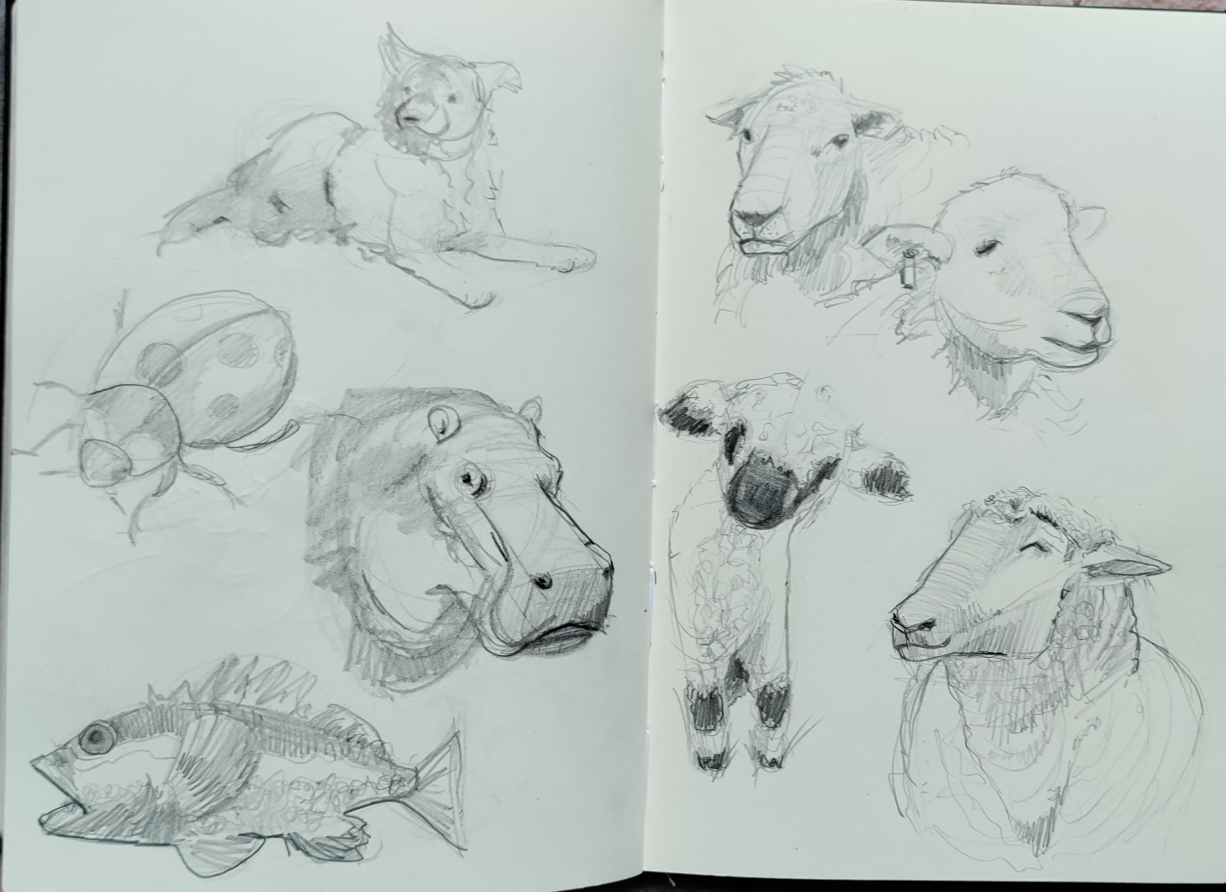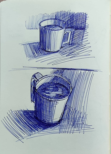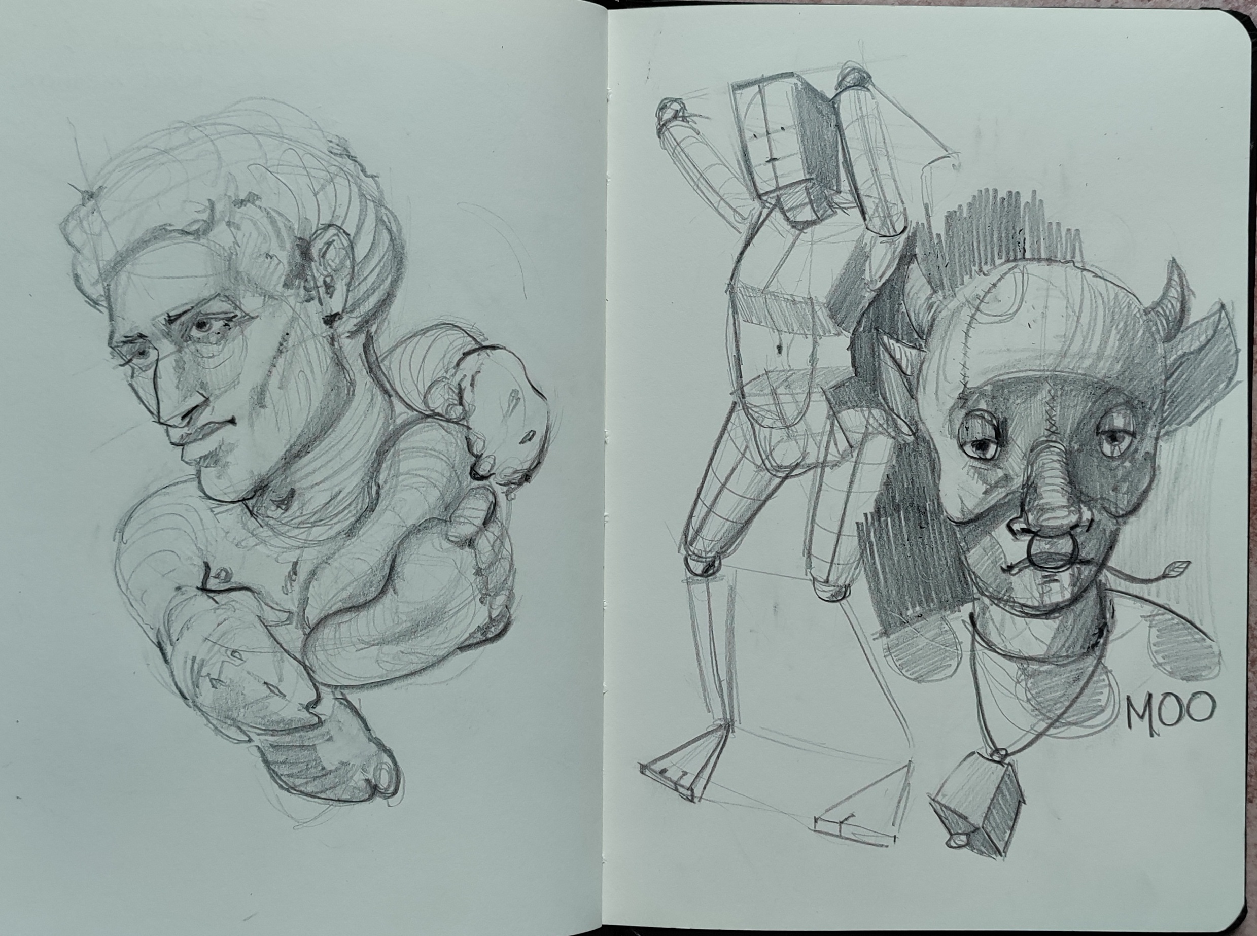 I like what you've done in the 4th-last image. There's a lot more purpose to the hatching and linework, and the features have a nuance of style about them that's really appealing. The other sketches seem over-relaxed like you weren't thinking about placement and were just feeling for the form.