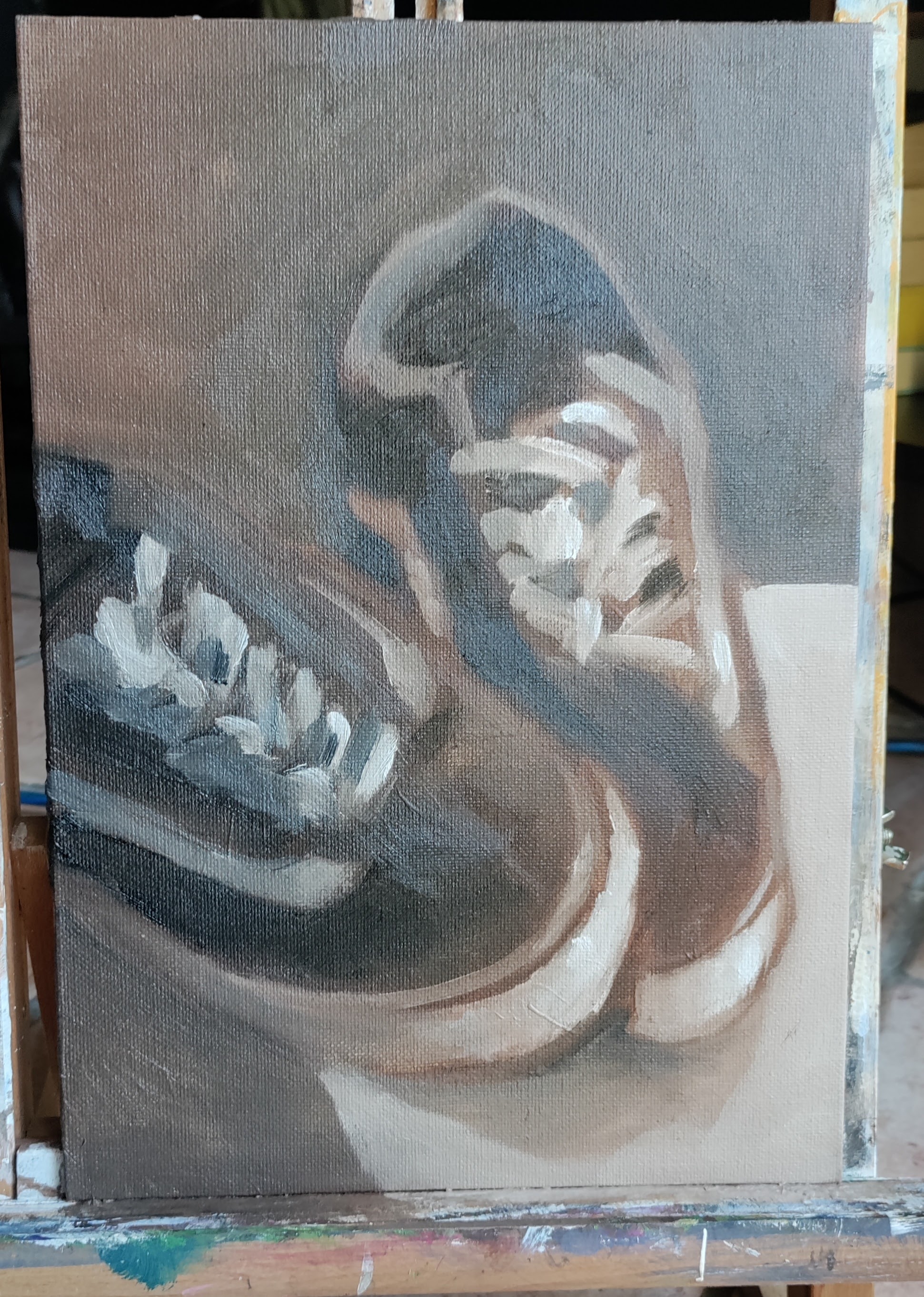 Oil painting of my shoes from today. The values definitely got muddy so for the next one I'm going to premix and plan the values before I start.