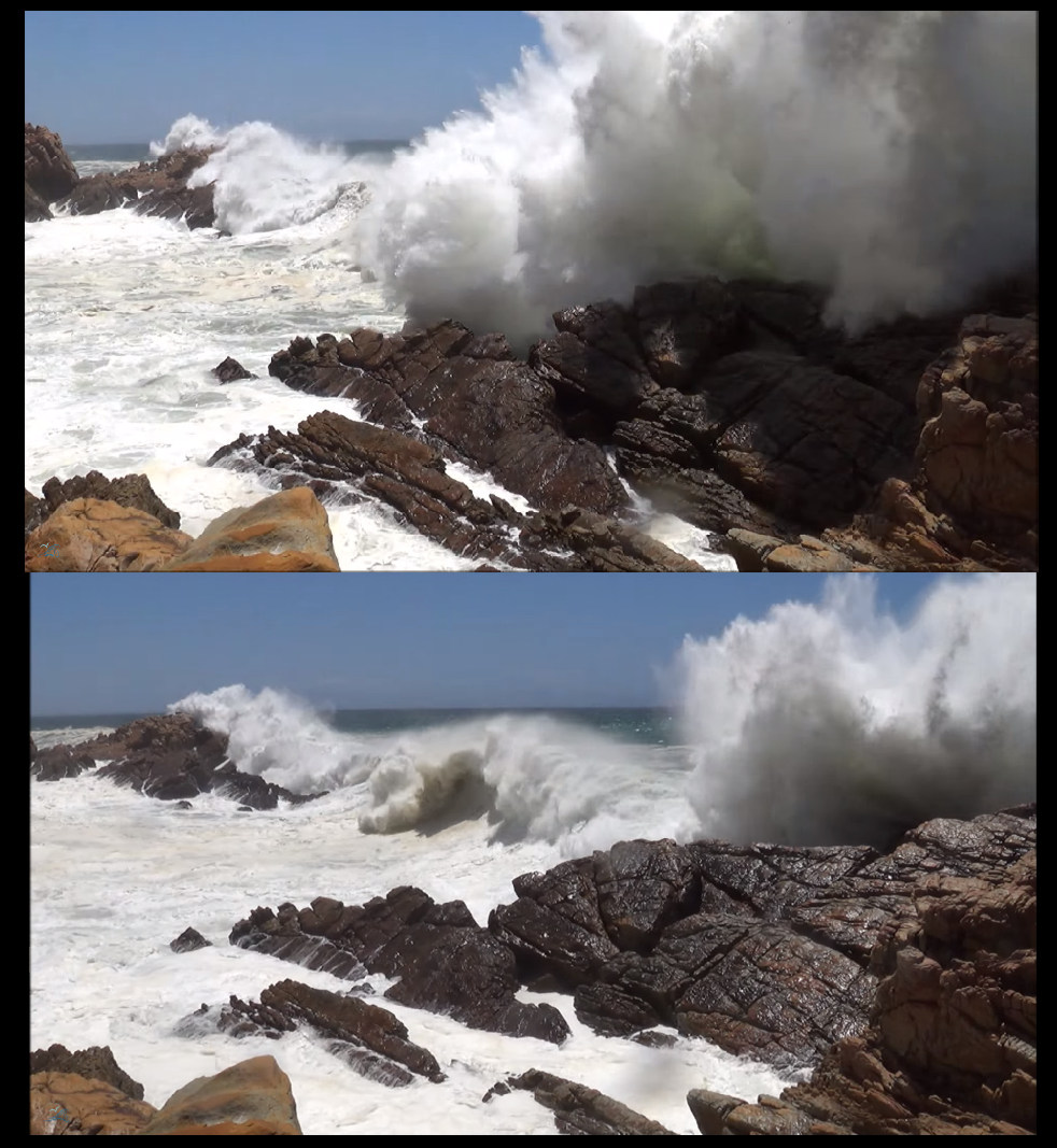 Then I took a couple of screenshots from a video on youtube which showed waves crashing on a rocky coast.