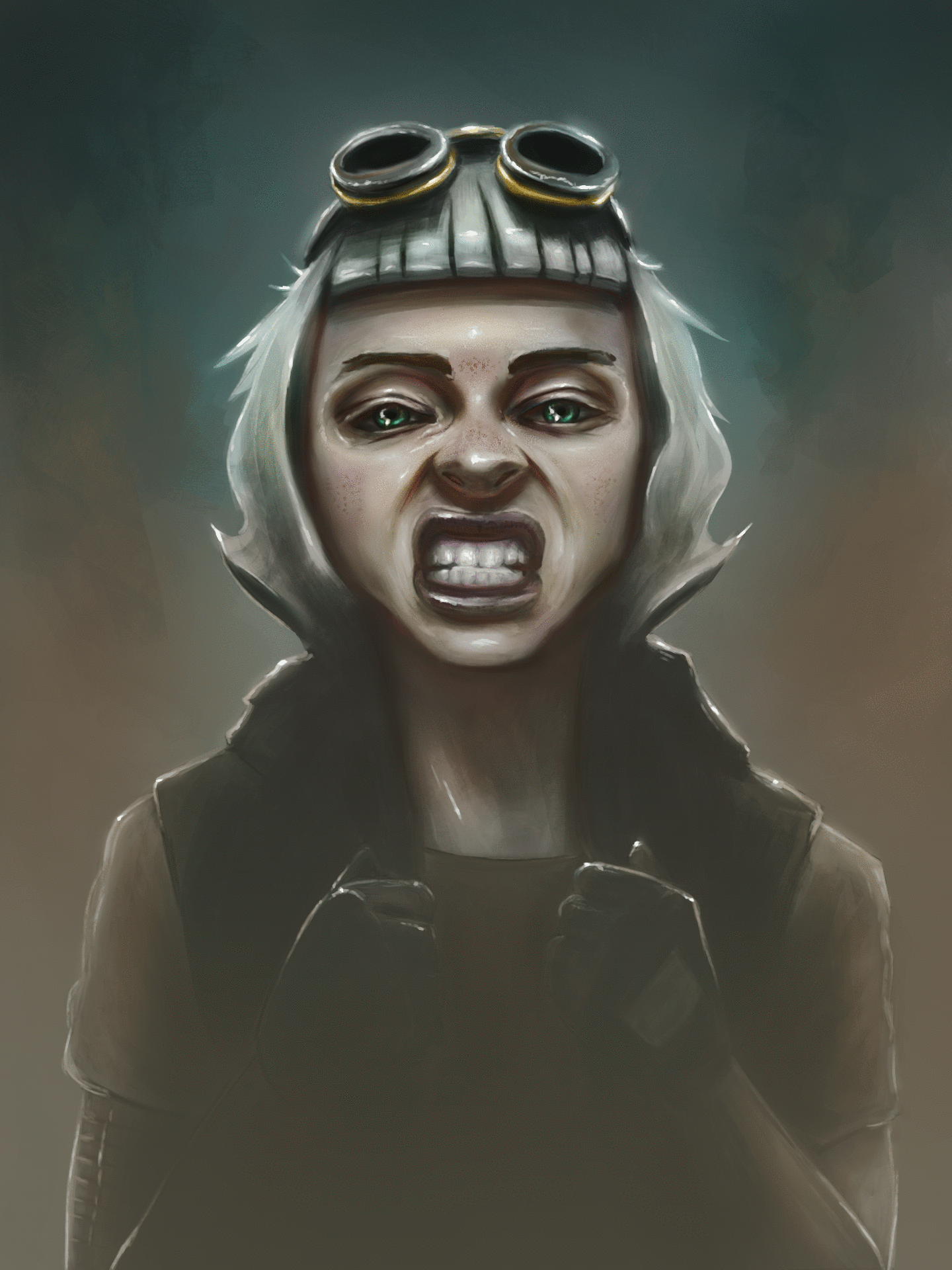 Nice texture on the teeth i am not sure about your hair yet could use more texturing.