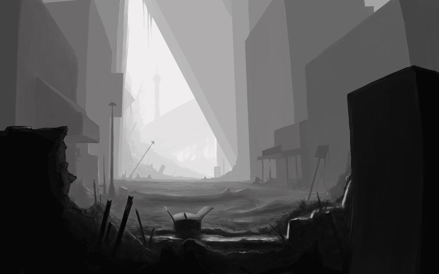 Just started this rough environment sketch after hours of studying environment values on pinterest boards.