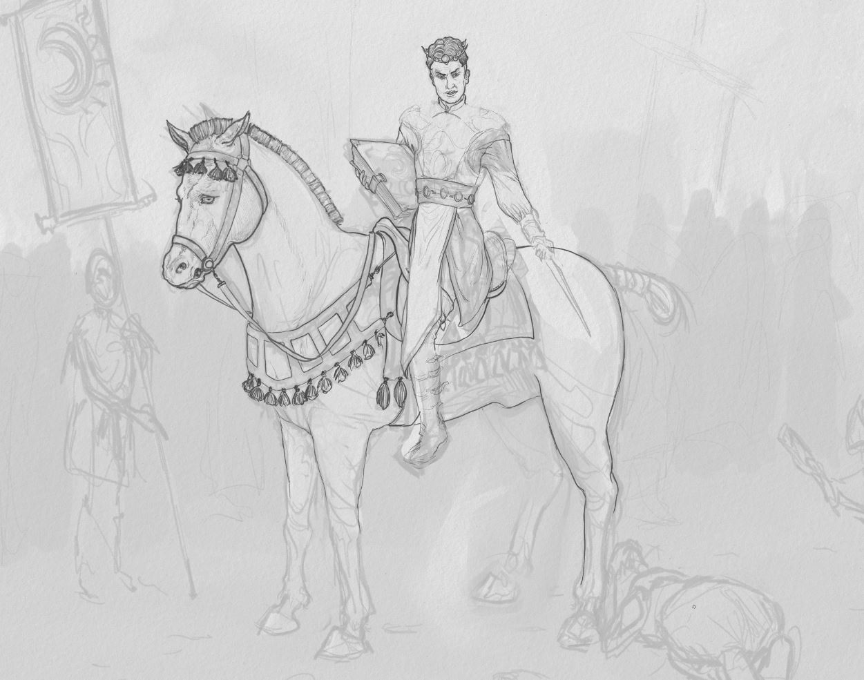 I really like the scene you have going so far! That actually seems like a more classical painting take on it, the guy on the horse gives it that. but you can't really go wrong there. looking forward to seeing where you take it