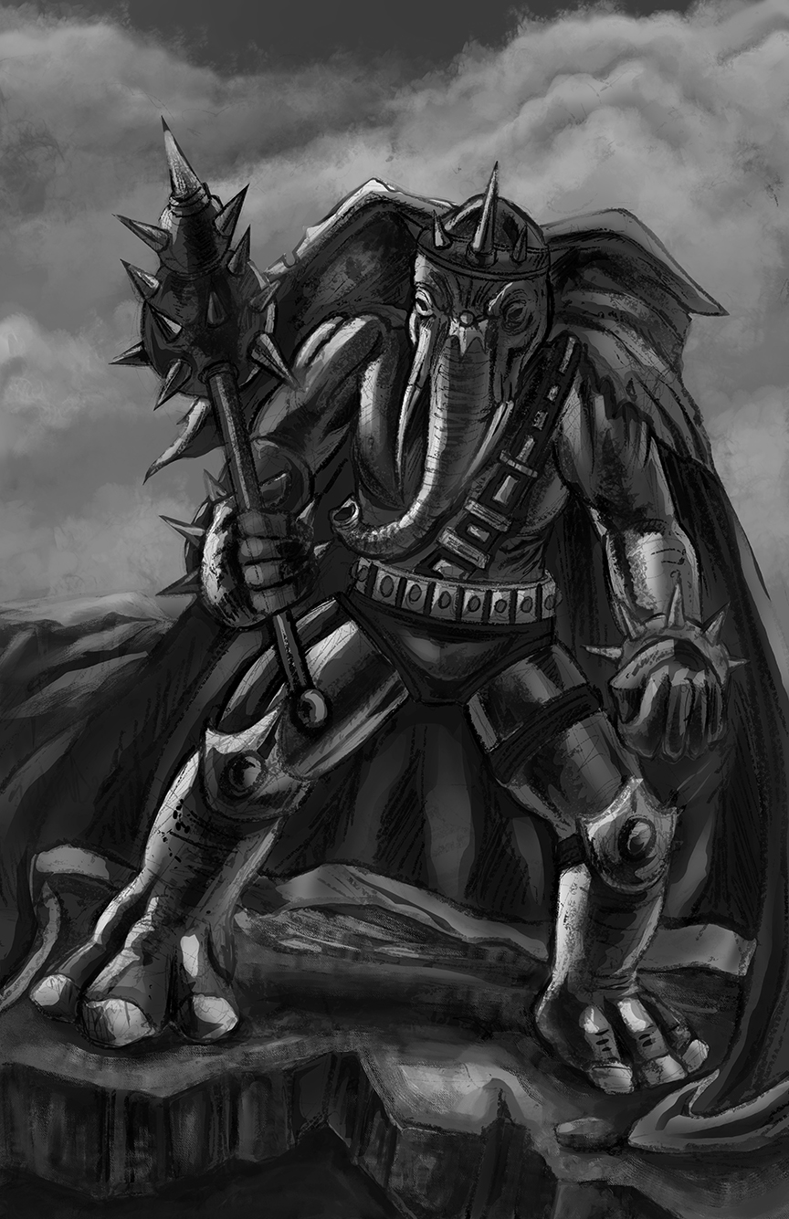 *Create a character that is humanoid that represents what you believe a Barbaric Elephant King to be.