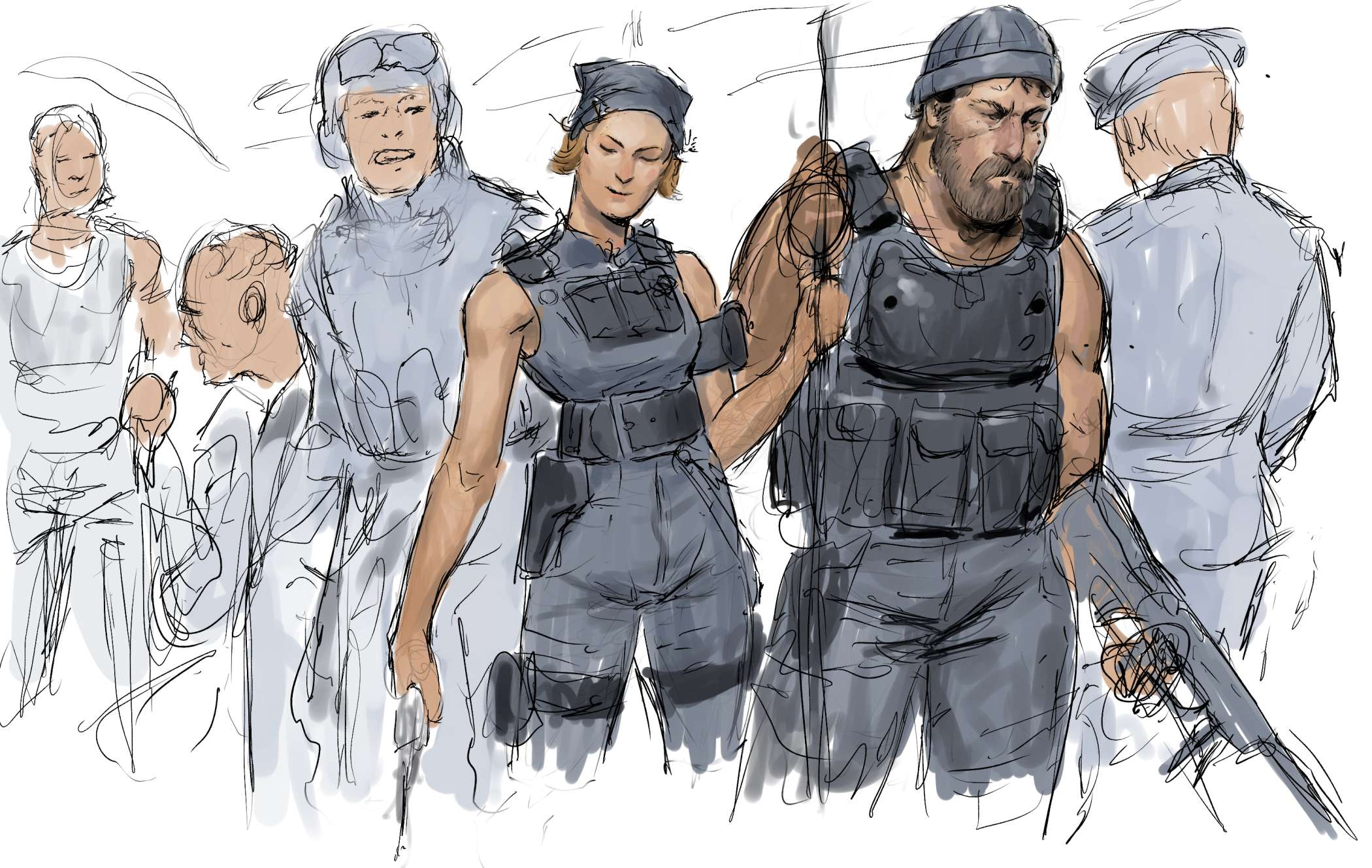 I gotta say the flat color line up of character as some personality.Strong gesture,good shape design and a good harmony united in a limited color palette . Alot of open space to rest the eye but contrasted by zone of detail.